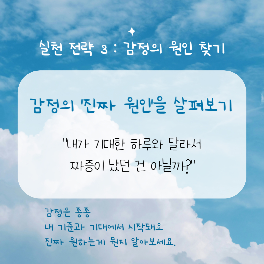 짜증의 원인이 날씨 자체인지, 아니면 내 기대 기준 때문인지 스스로 묻는 연습을 해보세요.